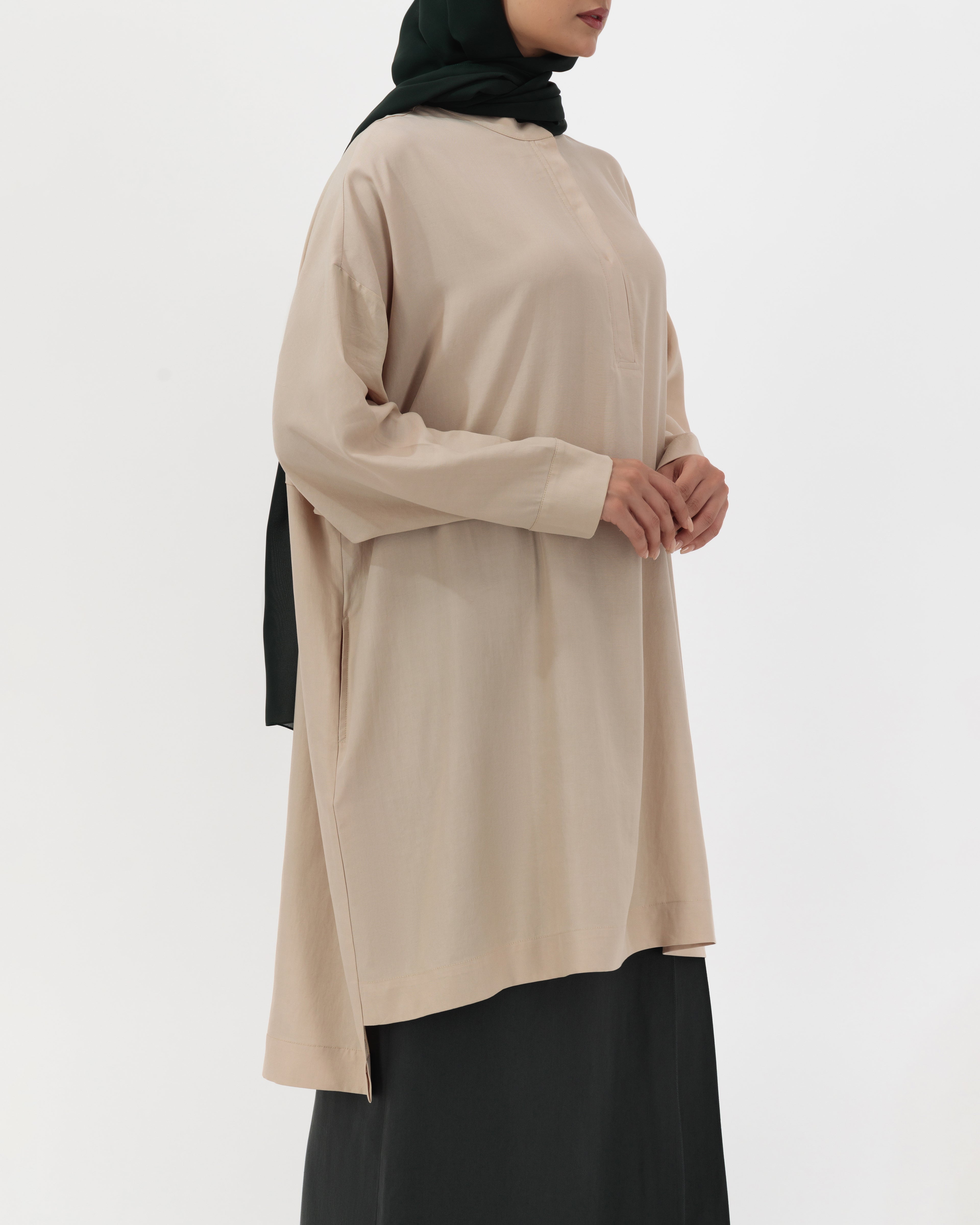 Every piece in this drop is made from pure cotton or TENCEL™. These fibres allow air circulation, gentle insulation, and drape naturally through changing weather. No synthetics or static.
